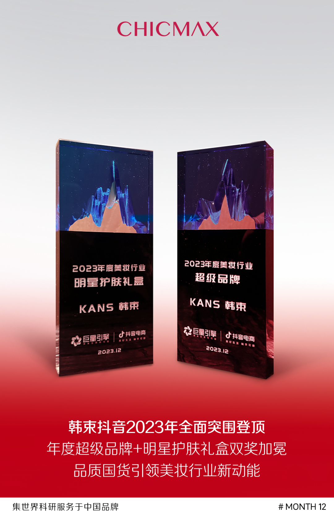 12月21日,巨(ju)量(liang)引擎美(mei)(mei)妝行(xing)(xing)業年度(du)盛典(dian)(dian)隆重(zhong)召開,活動(dong)現場舉(ju)行(xing)(xing)了(le)年度(du)獎(jiang)項的(de)頒(ban)獎(jiang)典(dian)(dian)禮(li)。上美(mei)(mei)股份旗下品牌(pai)韓(han)束一舉(ju)奪得2023年度(du)美(mei)(mei)妝行(xing)(xing)業超級(ji)品牌(pai),及(ji)2023年度(du)美(mei)(mei)妝行(xing)(xing)業明星護膚禮(li)盒兩項大獎(jiang)!
