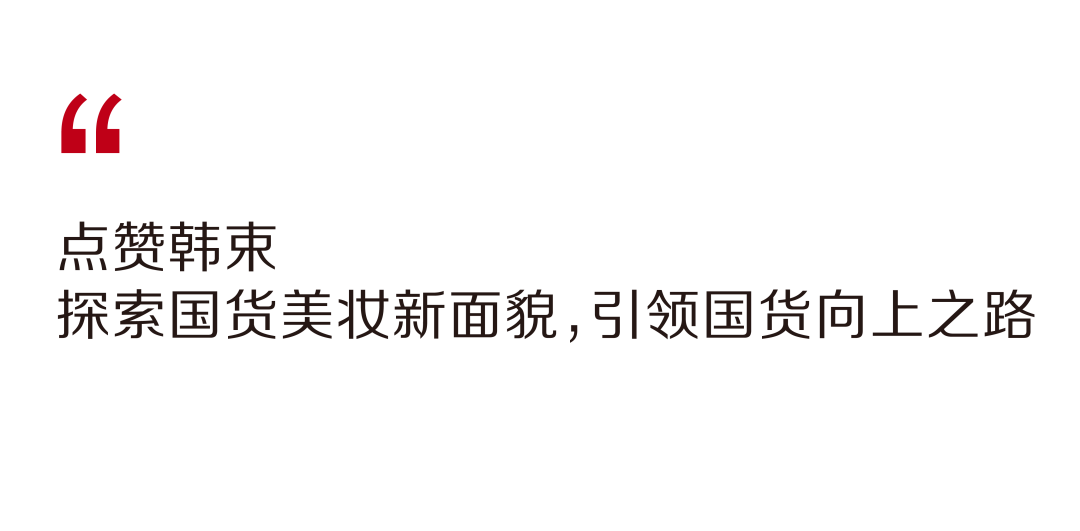 創(chuang)立至今21年間,韓(han)束親(qin)身經歷了(le)中國(guo)(guo)(guo)市場(chang)和中國(guo)(guo)(guo)消費者的巨大(da)變化,成(cheng)功(gong)完(wan)成(cheng)品牌(pai)年輕(qing)化轉型,在電商渠道(dao)取得“一騎絕塵”的成(cheng)就,并實(shi)現了(le)國(guo)(guo)(guo)貨頭部(bu)品牌(pai)的突圍,展現出(chu)21年國(guo)(guo)(guo)貨大(da)牌(pai)強勁的品牌(pai)生(sheng)命力和品牌(pai)勢能(neng)。